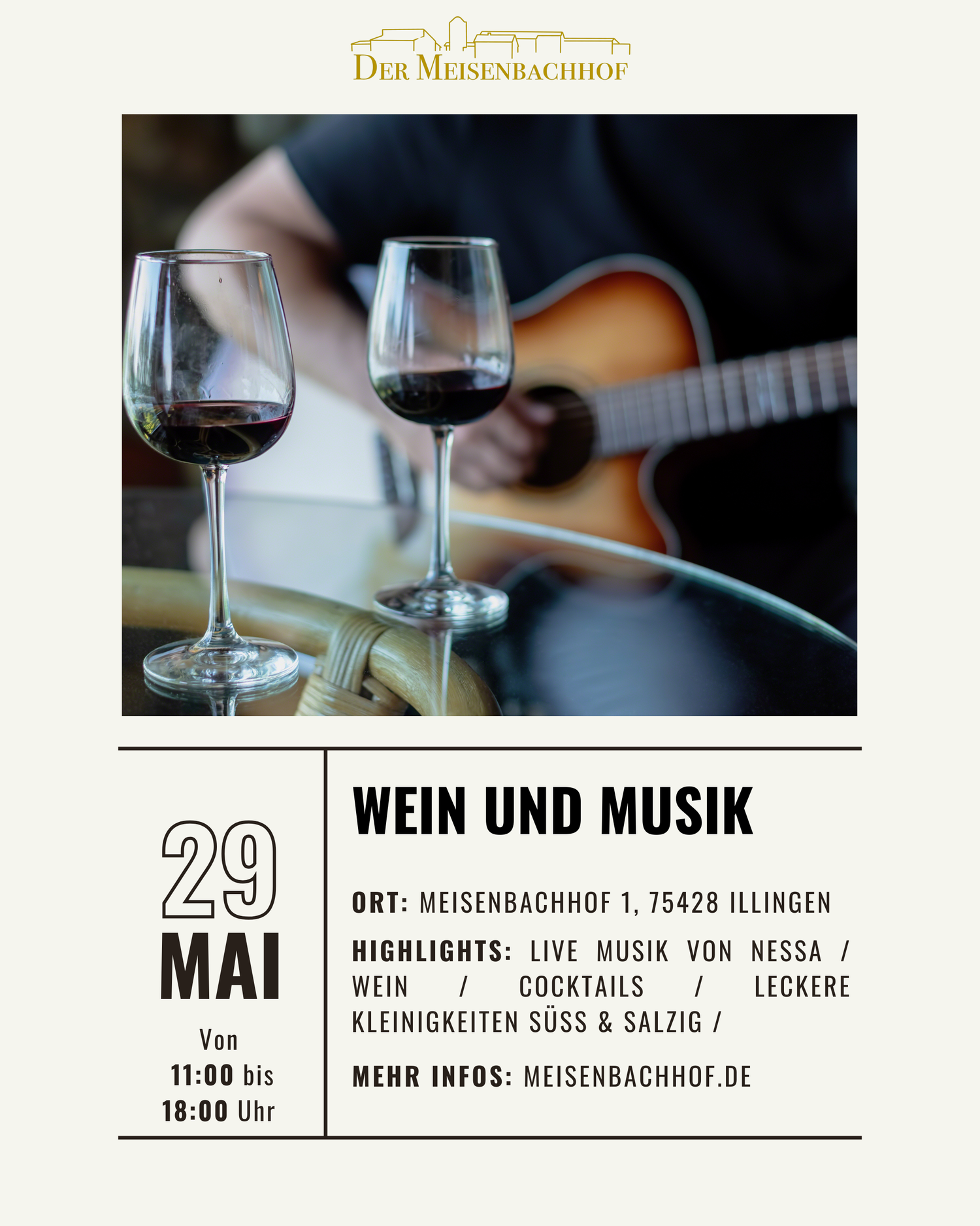 Am 29. Mai heißt es: Wein & Musik mit Nessa auf dem Meisenbachhof!