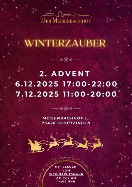 Der Winterzauber auf dem Meisenbachhof steht vor der Tür – und wir laden euch ein, mit uns die festliche Saison zu feiern! Am 6. und 7. Dezember 2025 könnt ihr winterliche Stimmung, Glühwein, leckere Spezialitäten und einen stimmungsvollen Hof genießen.