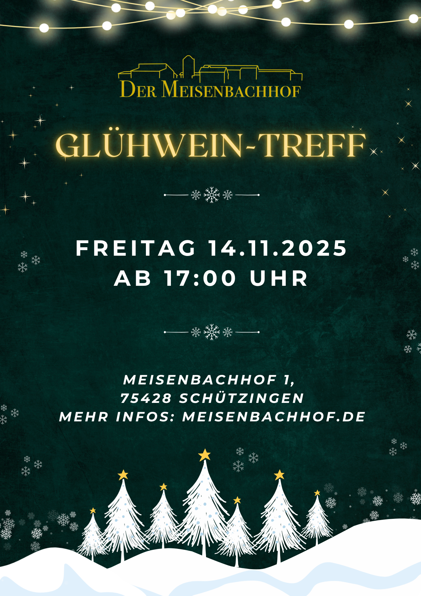 Der Winter steht vor der Tür – und wir starten gemütlich in die Glühweinsaison! Beim Glühweintreff auf dem Meisenbachhof am 14.11.2025 ab 17:00 Uhr, erwartet euch hausgemachter Glühwein aus unseren Weinen, leckere Snacks und gute Stimmung in stimmungsvoller Hof-Atmosphäre.